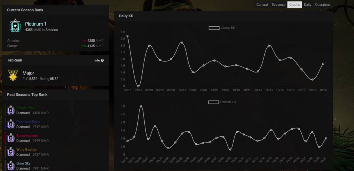 R6Stats allows us to view and compare Rainbow Six: Siege stats with thousands of players around the world!